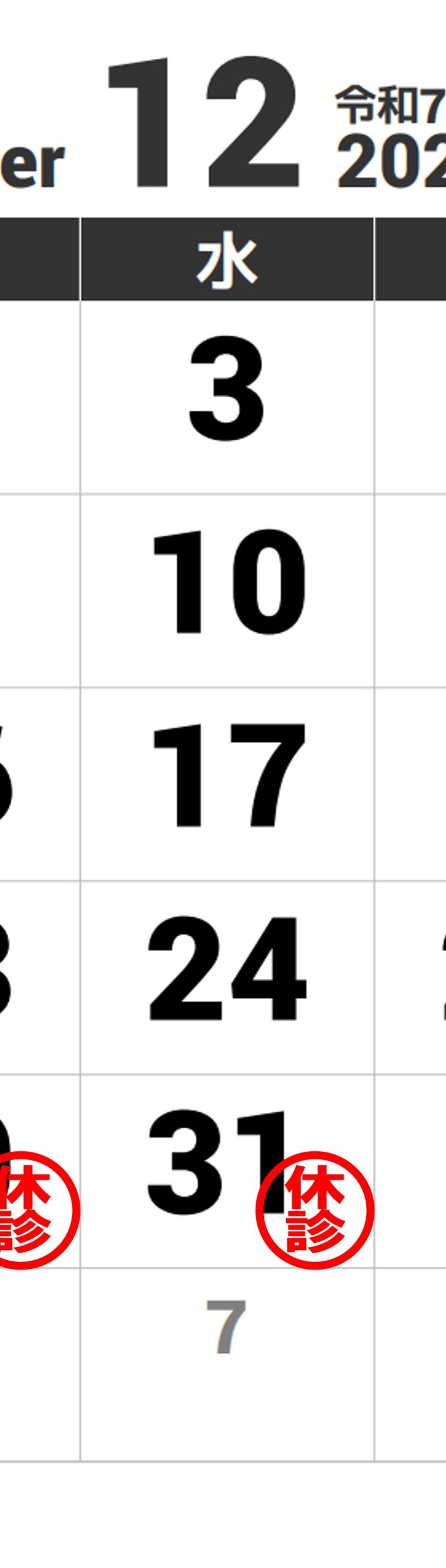 休診日:令和7年12月27日(土)~令和8年1月4日(日)